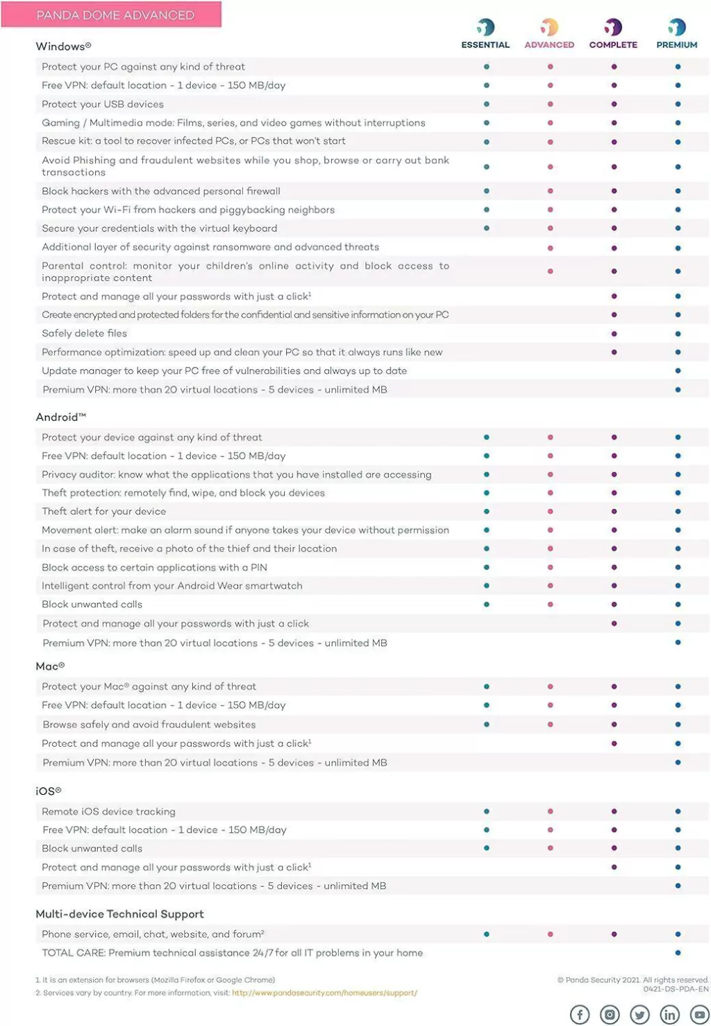 La protección avanzada de Panda Dome Advanced incluye las principales funcionalidades de Panda Free Antivirus y del plan Essential: